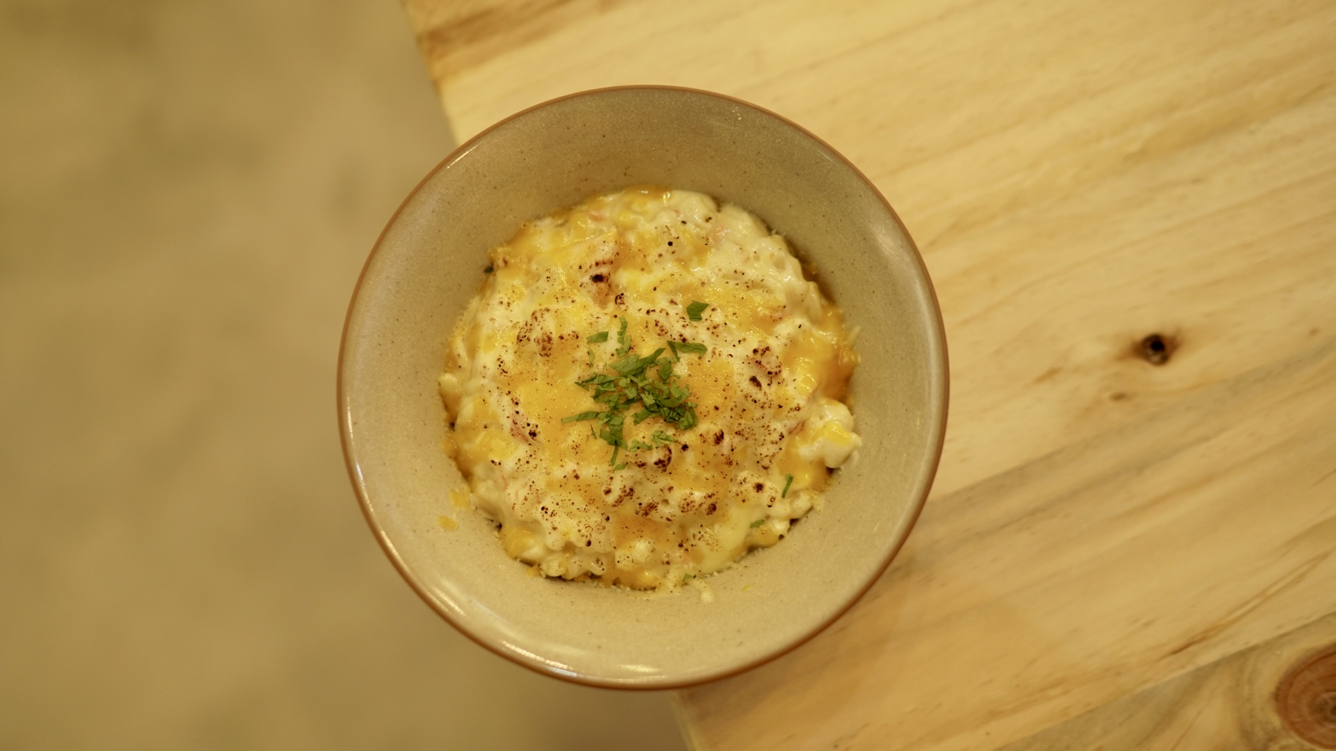 Because we love food as much as you do 🙂 Our simple and cozy setup with unique custom-made wood furniture creates the perfect atmosphere for a comfortable meal.